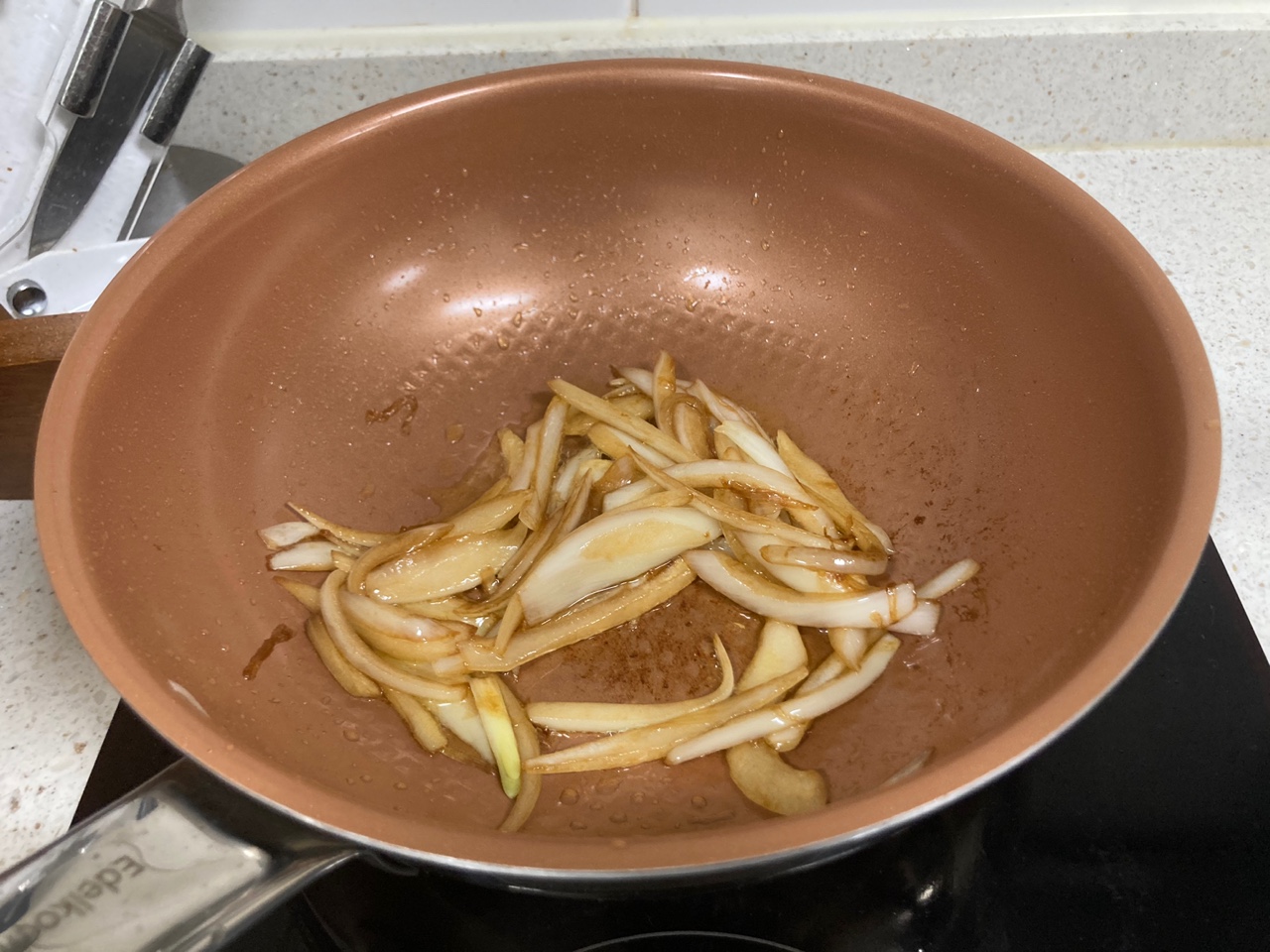 양파가 반투명해지면 팬 한쪽으로 몰아두고